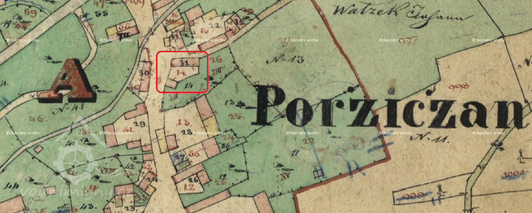 150 m severně od kostela Narození P. Marie v Poříčanech