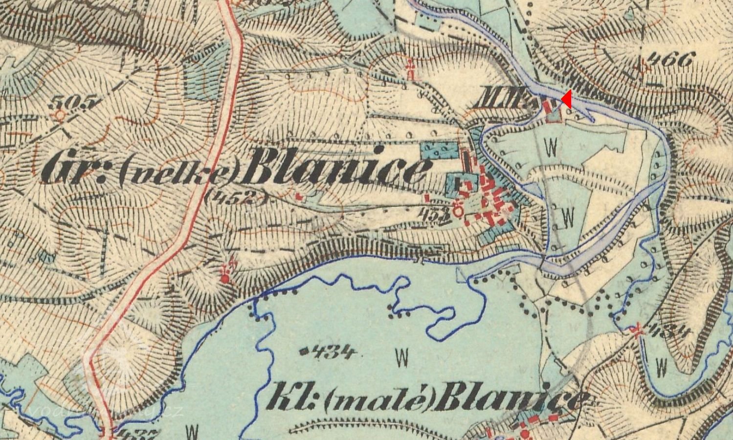V Tereziánském katastru zpracovaném v letech 1713 – 1757 je uveden panský Blanický mlýn o pěti kolech, šesti stoupách a jedné valše na stálé vodě...