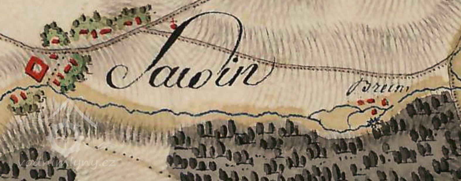 Mlýn v Savíně je vyznačen již na mapě z 18. století. Později byl přestavěn na pilu.