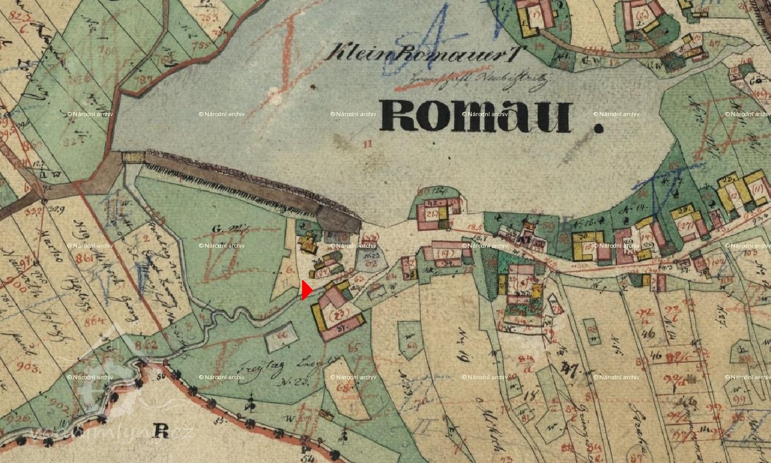 V roce 1869 je doležen sčítacím archem na čp.23 v Romavě mlynář Freitag.