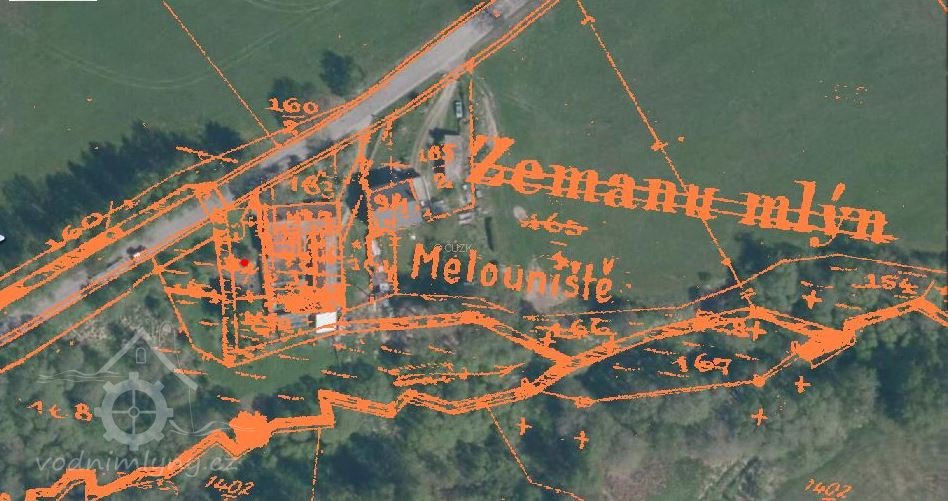 V r.1884 v provozu mlýn, pila a šindelka... Při vodoprávním řízení 7.4.1894 osazen vodní cejch a fixní bod. V r.1904 vypukl ve stavení požár, mlýn a pila vyhořely. Karel Meloun už mlýn neobnovil, jem zčásti hospodářské stavení. Následující rok vše prodal a odstěhoval se. Od té doby se stevení a místu říká „Melouniště“...