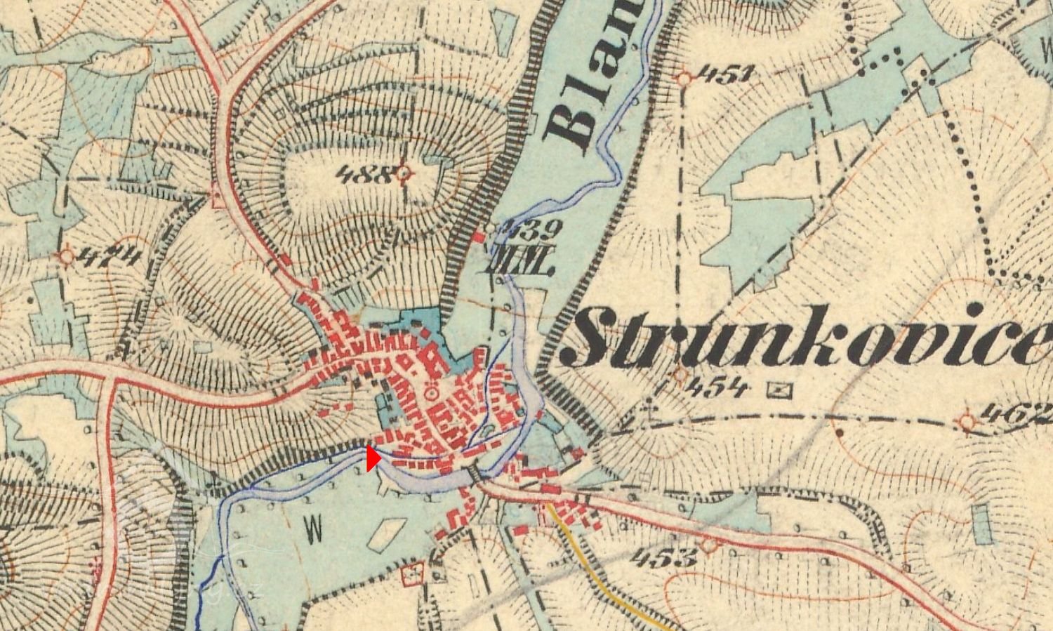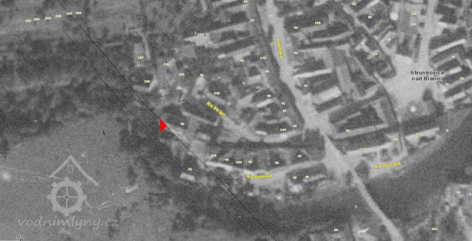 Tento mlýn nalezneme ve Strunkovicích přímo v obci, půjdeme-li z náměstí směrem dolů k řece a hned před mlýnským náhonem zahneme vpravo. Jedná se o velmi starý panský mlýn, který tu stál již ve 12. století...v letech1379 až 1383 se tu nalézaly dva mlýny, každý se dvěma koly. V úročním rejstříku z roku 1547 jsou seznamy hospodářů i s daněmi,které byli povinni splácet vždy k sv. Jiří a sv. Jakubu. Tady se uvádí dokonce mlynáři tři: Petr mlynář s platem 21 gr. 1 d. a 7 gr. 3 d. Druhý byl Michal mlynář s odvodem pouze ke sv. Jiří 10 gr. 5 d. a třetí Šimon mlynář jen ke dni sv. Jakuba 5 gr. 5 d. V robotním registru z 15. nebo 16. století se uvádí jeden mlynář Vávra a druhý jménem Kříž.