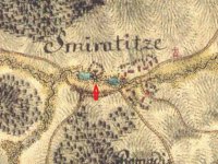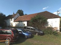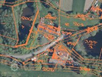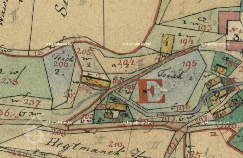 Uzavřený areál bývalého vodního mlýna má mlýnici a přilehlou stodolou do tvaru písmene L s vjezdem z východní strany. (JV)