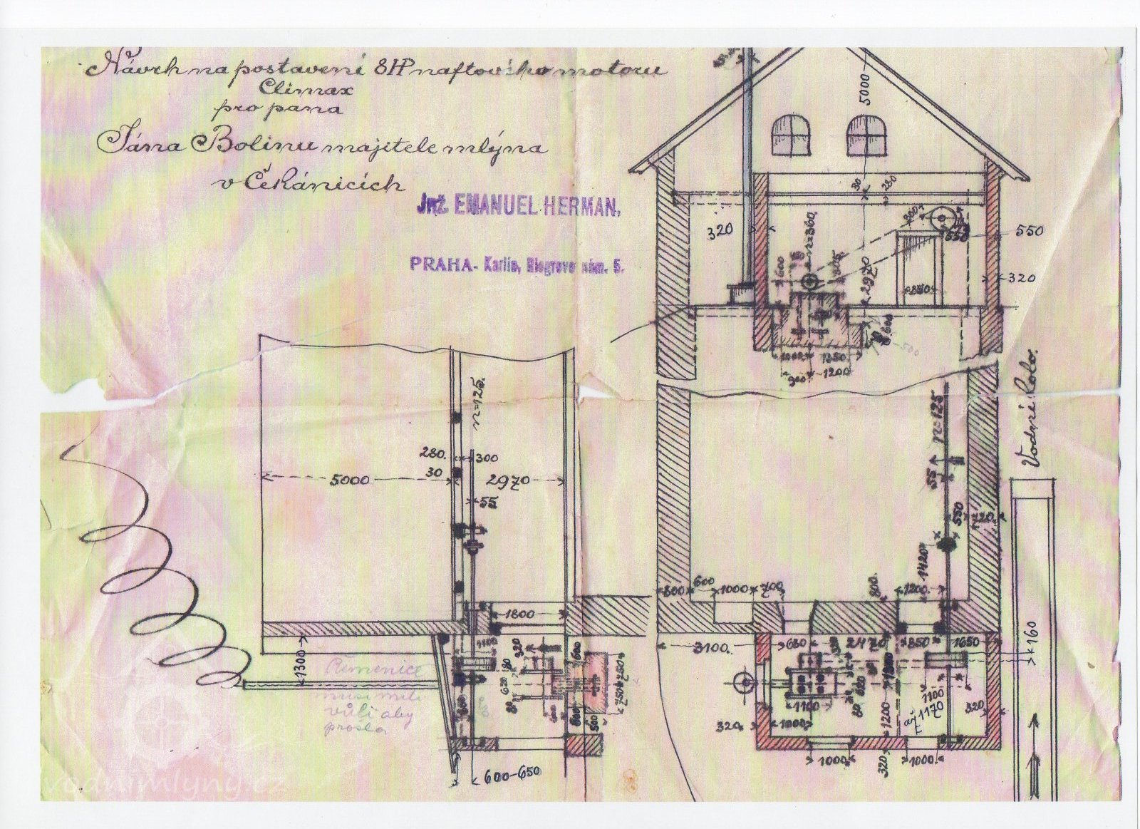 1930: 1 kolo na svrchní vodu, hltnost 0,112 m3/s, spád 4 m, výkon 3,8 HP