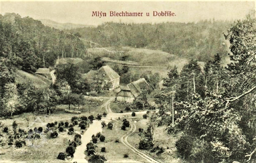 V r. 1698 byl na základě již dříve uzavřené smlouvy mezi správou dobříšského panství a pražským měšťanem a měsikovcem J. A. Hibnerem, správou panství postaven nový hamr na výrobu plechu na říčce Kocábě, doleji pod čtvrtým hamrem. Říčka Kocába vytvářela na tomto místě ohyb do tvaru ú.“Plechhamer” byl přestavěn na mlýn. Prvním mlynářem se v r. 1707 připomíná Fortelka jenž tuto samotu odkoupil od dobříšského panství. Mlýn sám byl r. 1895 odkoupen knížecím velkostatkem. Mlýn fungoval až do r. 1931 kdy vyhořel. Dnes již pouze jako zřícenina.