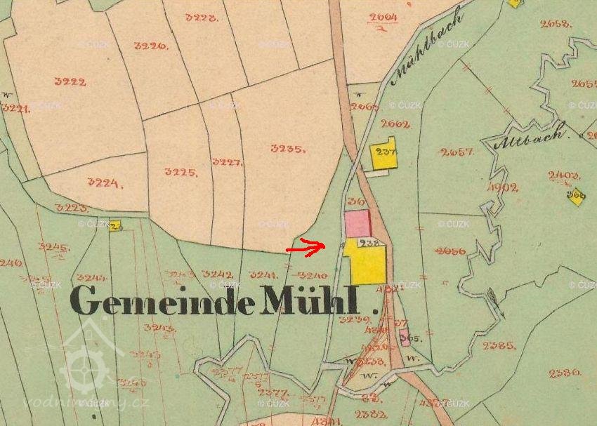 Značka mlýna je zakreslena i na III. vojenském mapování.