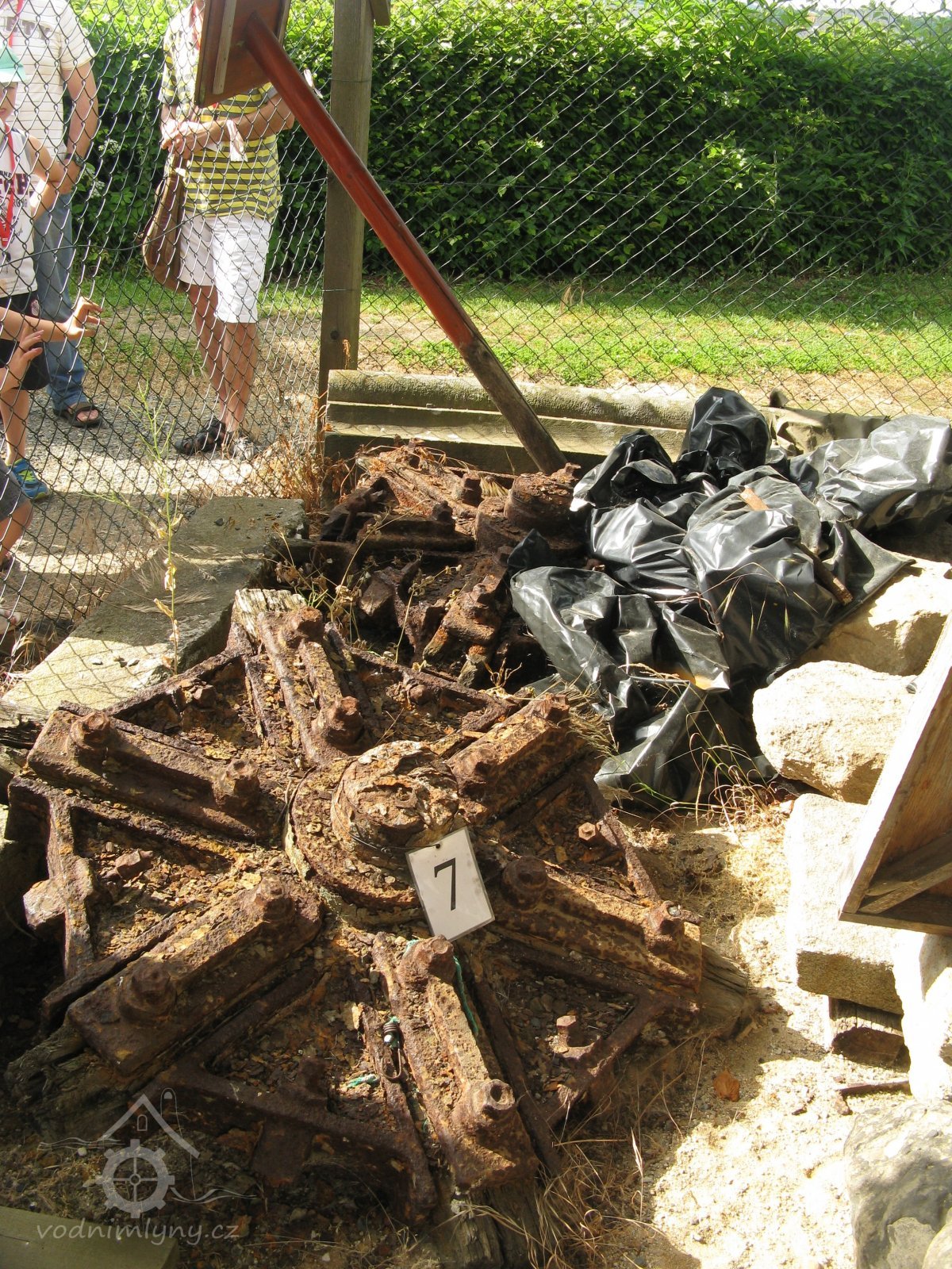 PopisVe mlýně bývalo vodní kolo s litinovou hřídelí a rozetami. Dnes jsou v lapidáriu Dobřížského zámku obě rozety.