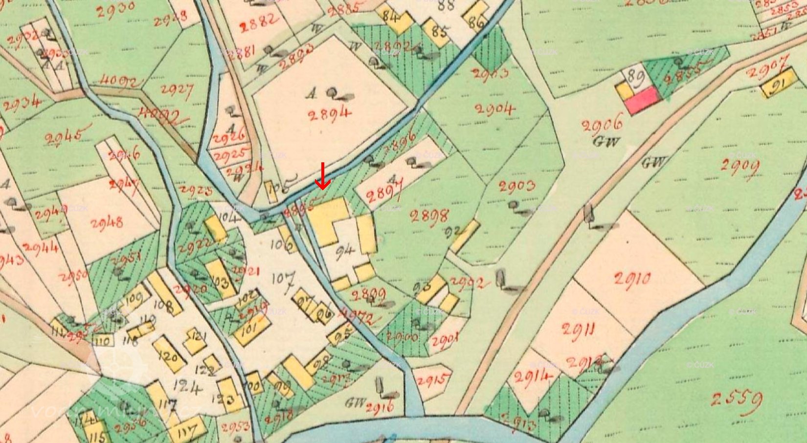 1820 – v seznamu domů v obci je na č.30 uveden Jura Zvonek, mlynář, měl dům o jedné světnici, 1 komín, platil daně 20 kr. Na témže čísle je ještě uveden Tomáš Zvonek, rovněž mlynář, měl jednu světnici, bez komína, platil rovněž 20 kr. daně. Titéž jsou uvedeni v seznamu pozemků z téhož roku a oba drželi stejnou výměru půdy – 36 kusů polí, o výměře 11 jochů 1376 sáhů. Jura i Tomáš Zvonkovi jsou uvedeni i v pozdějším seznamu domů