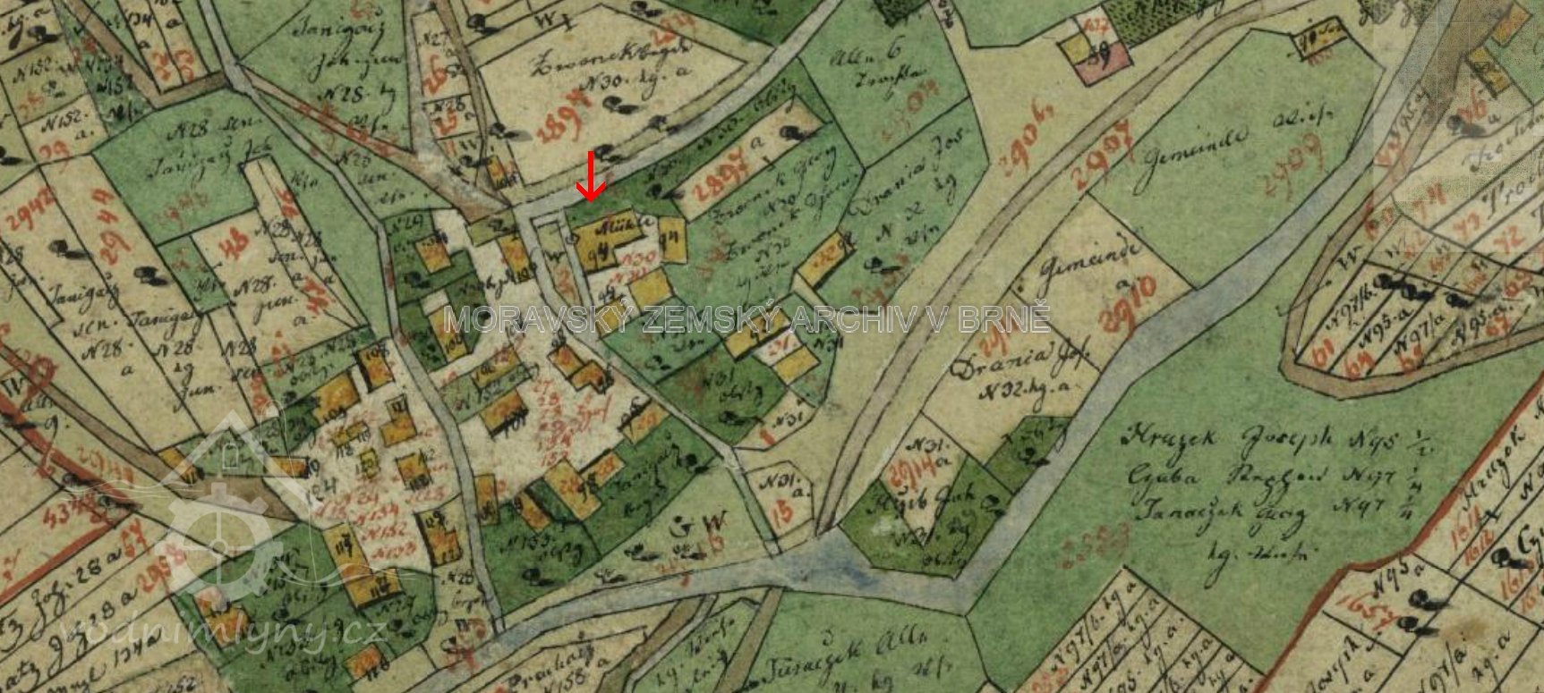 1820 – v seznamu domů v obci je na č.30 uveden Jura Zvonek, mlynář, měl dům o jedné světnici, 1 komín, platil daně 20 kr. Na témže čísle je ještě uveden Tomáš Zvonek, rovněž mlynář, měl jednu světnici, bez komína, platil rovněž 20 kr. daně. Titéž jsou uvedeni v seznamu pozemků z téhož roku a oba drželi stejnou výměru půdy – 36 kusů polí, o výměře 11 jochů 1376 sáhů. Jura i Tomáš Zvonkovi jsou uvedeni i v pozdějším seznamu domů z r.1828, oba na č.30.