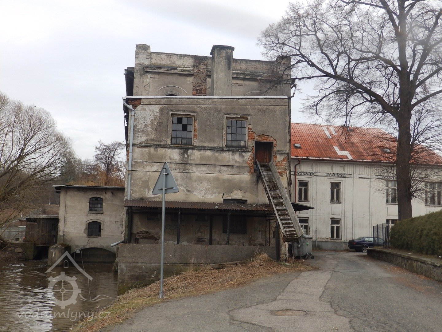 Rozsáhlá dvoupatrová mlýnice o půdorysu asi 25 * 10 m. Na ni kolmo postavená obytná budova mlýna, která zároveň tvoří západní stranu hospodářského dvora.