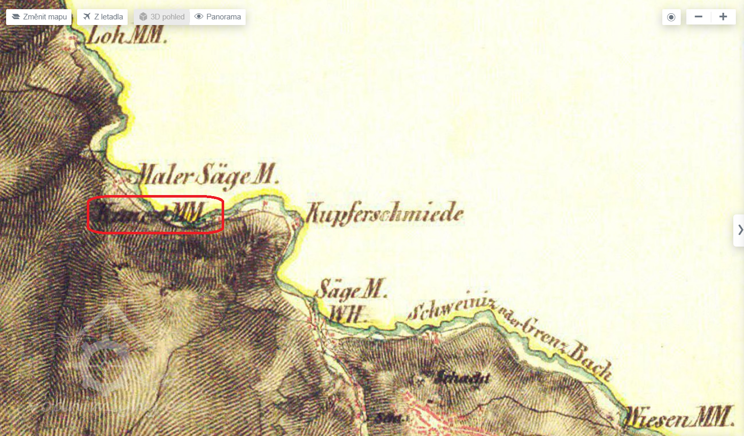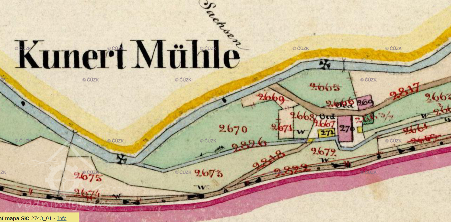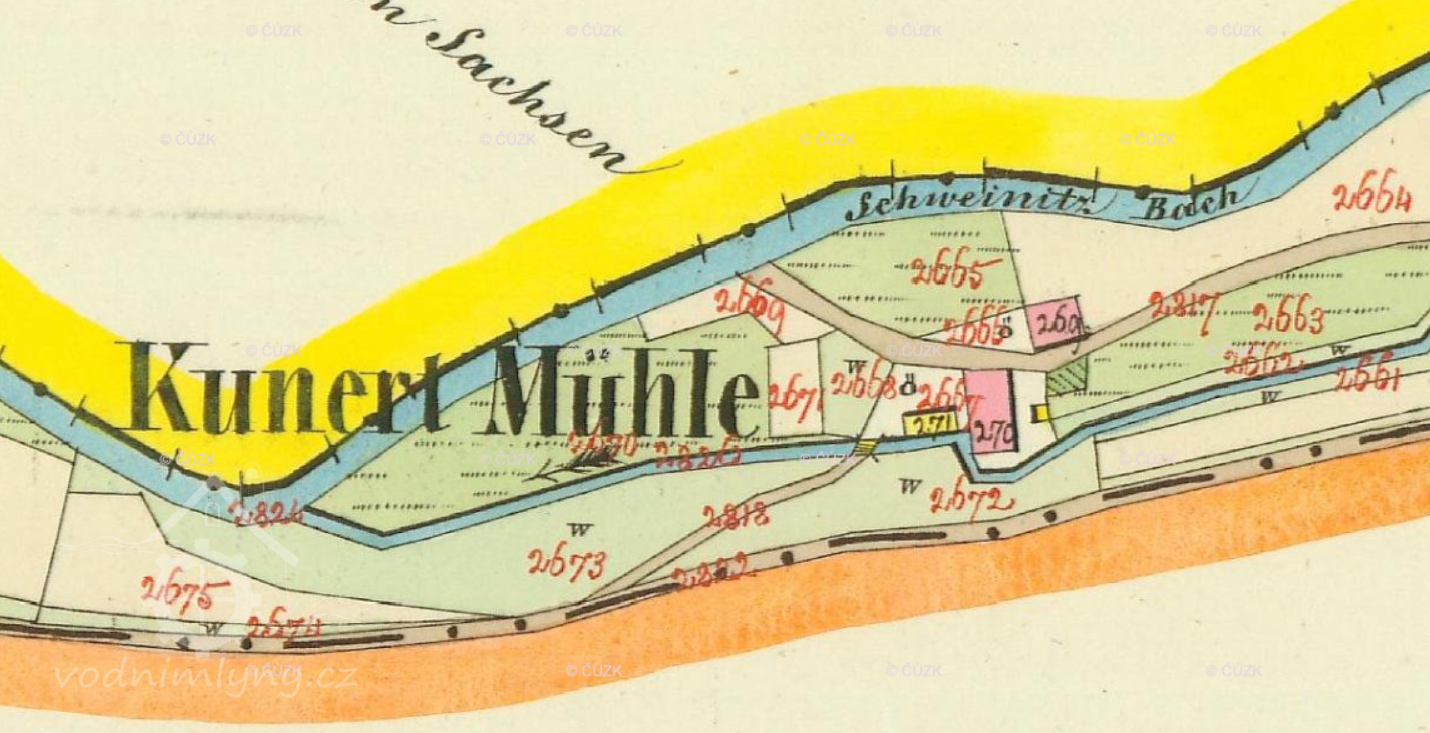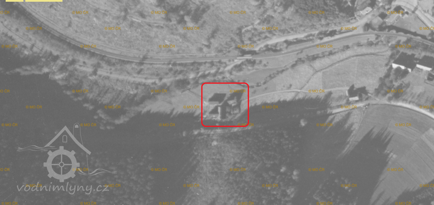 1963 mlýn zmizel (přes mlýniště probíhalo hraniční oraniště)