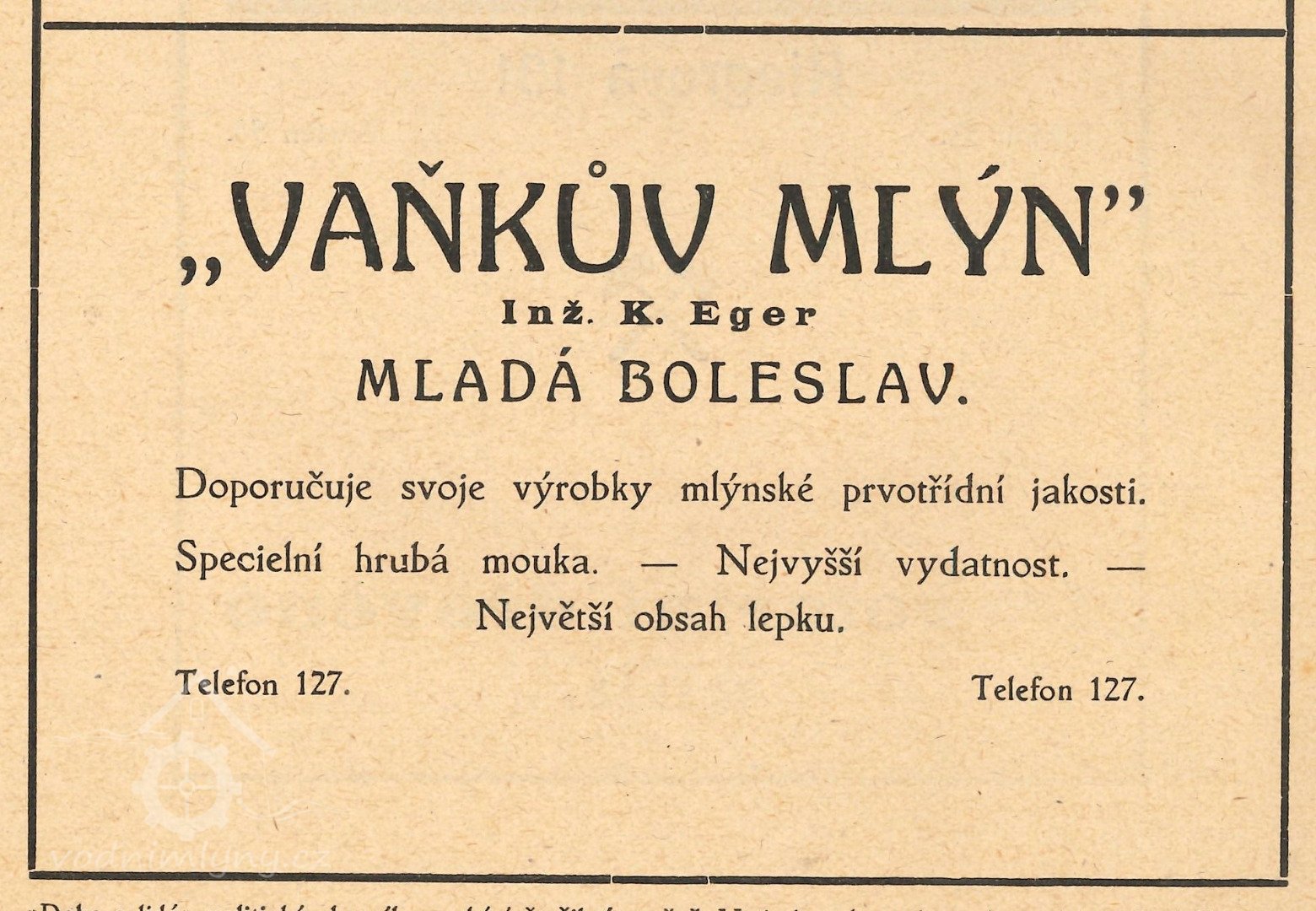 V roce 1930 byl majitelem mlýna a elektrárny pro pivovar Ing. Karel Eger.