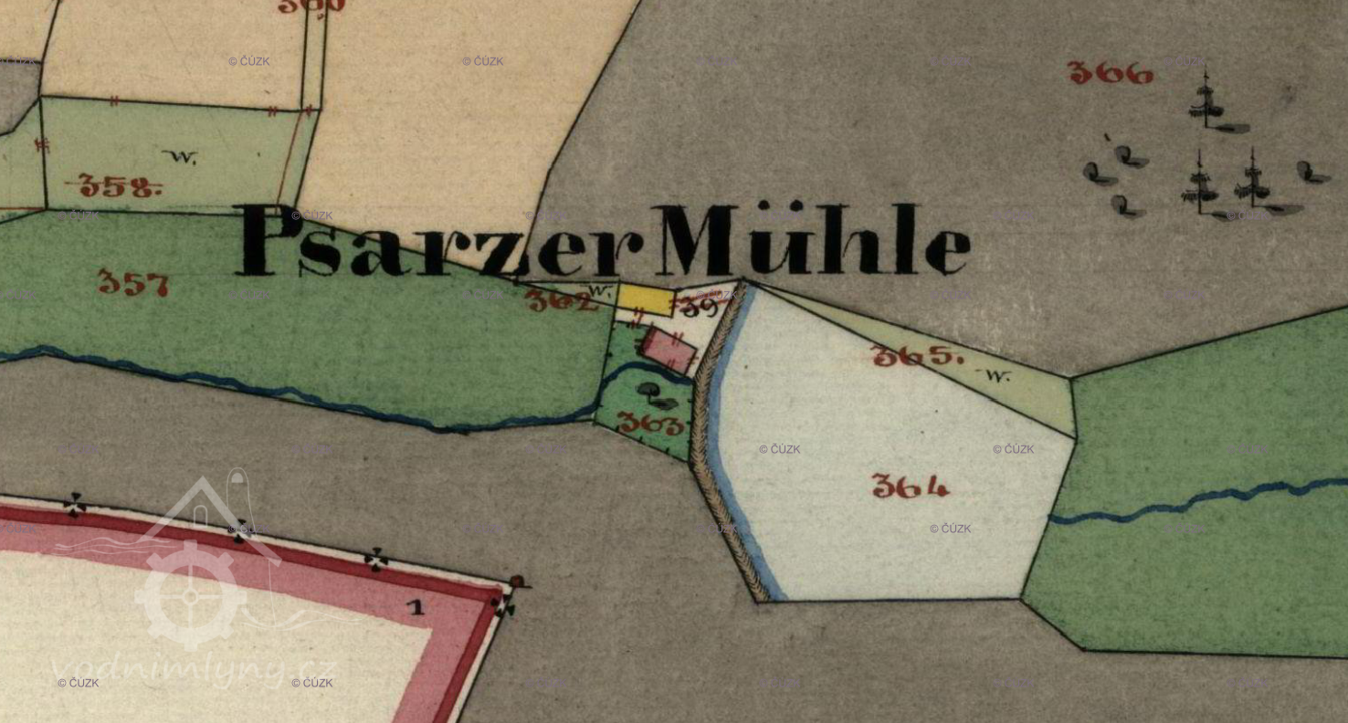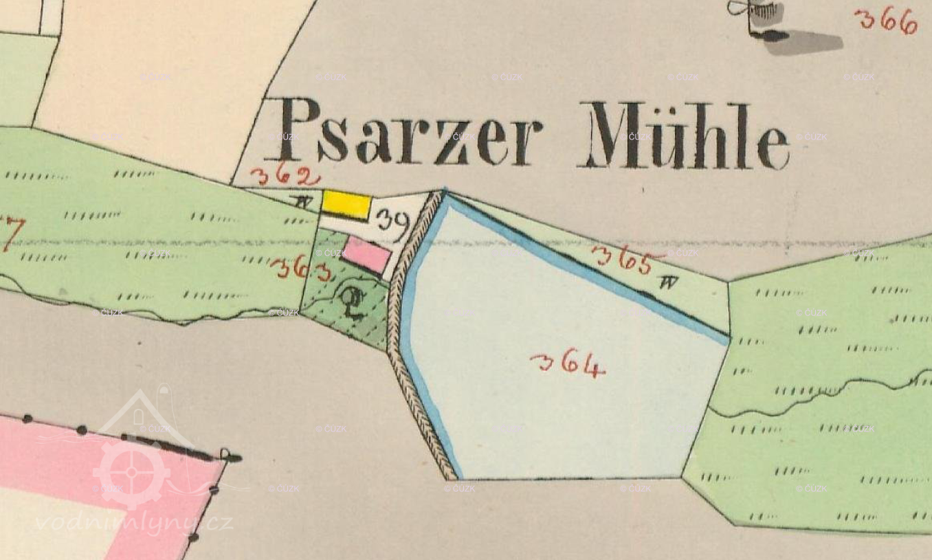 Zcela zaniklý menší mlýn pod protrženým rybníkem v údolí jižně od vsi. Mohutná hráz rybníka stále stojí, z mlýna však již nelze nalézt nic. Doba zániku mlýna zatím není známa, není však patrný ani na leteckém měřickém snímku z roku 1938.