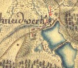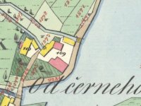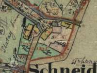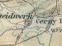 1838 - podlouhlá spalná budova s jedním kolem spojená s menší zděnou, obytná budova je již nespalná, v areálu ještě spalná budova pily, majitelem je Martin Pavlík.