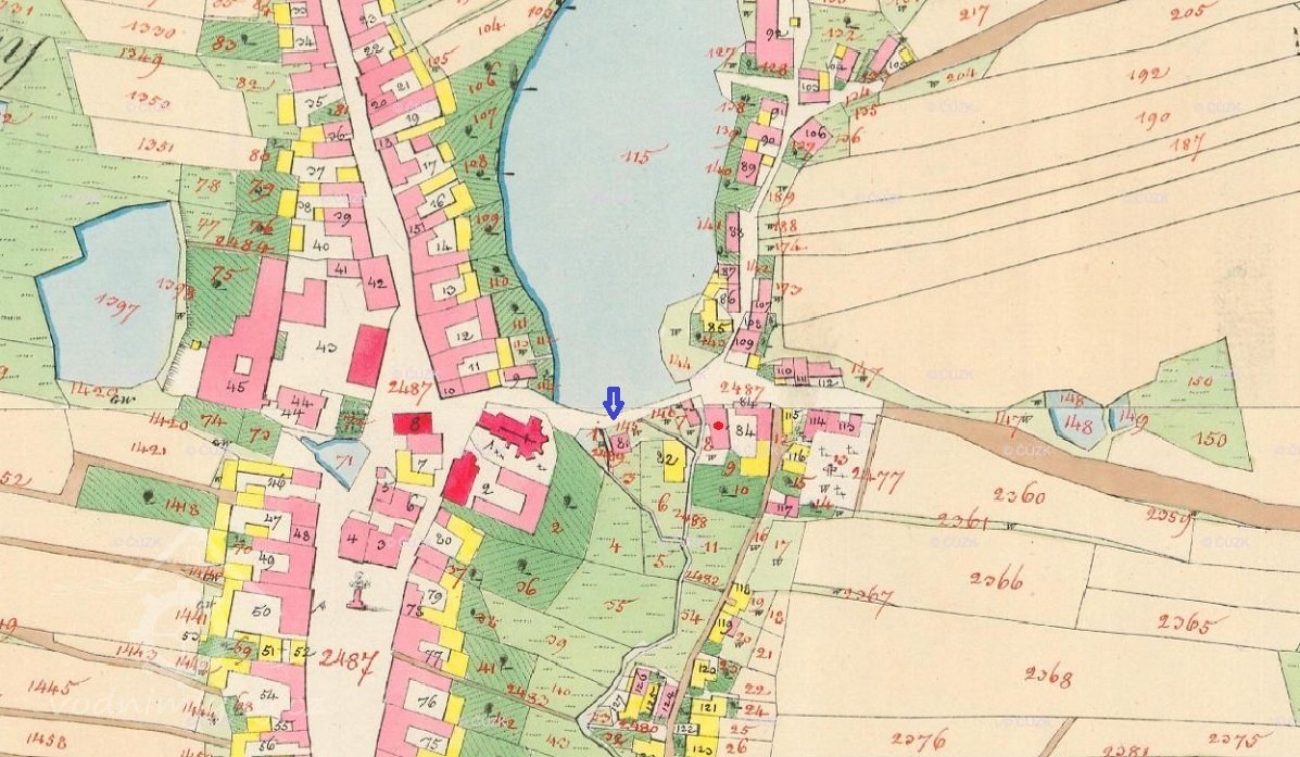 Pamětní kniha obce Studená - Za vodu z podkostelního rybníka platil mlynář podkostelní v r. 1669 do důchodu ročně 1 g a jeho spodnější soused pod mlýnem 2 g.