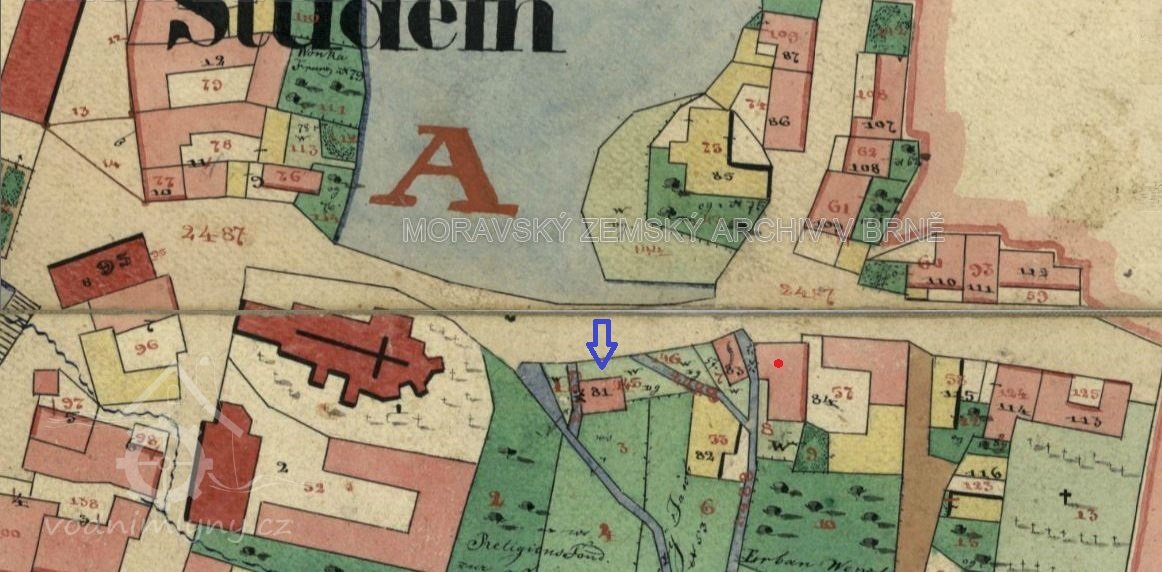 1835 čp. 57 Václav Erban, čp. 12 Podstatzky-Liechtenstein, obydlí drába