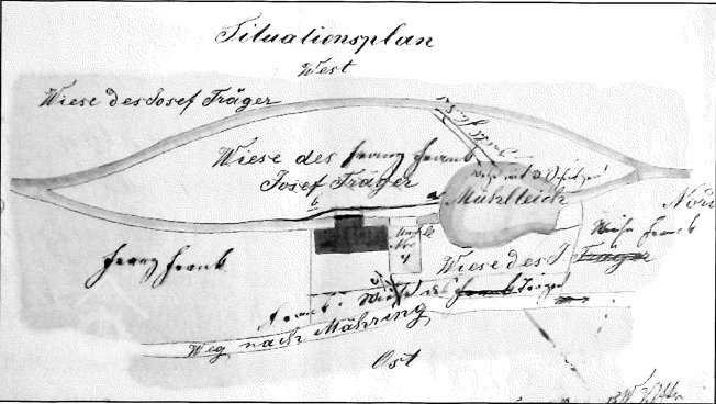Dle dokumentace z roku 1860 požádal mlynář Josef Träger o možnost vystavět při mlýně novou pilu.