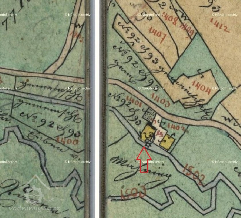 Dle vyobrazení na mapách stabilního katastru se mlýn skládal ze dvou drobných objektů ze spalného materiálu.