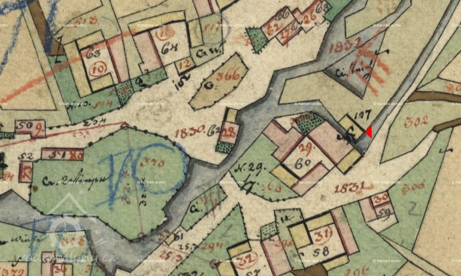 Přípustná výška vody je stanovena v prkně zapuštěnou horizontální skobou u levého břehu na začátku mlýnské strouhy. Značka normálu je na louce na parc.č. 363 a to na pravém břehu mlýnské strouhy v jejím směru 39,5 m od pily a 2,5 m od pravého břehu mlýnského náhonu. Je to kamenný sloupek v zemi zazděný a zasypaný, spojený s vodorovným křížem. V horní ploše tohoto sloupku je uprostřed železný hřeb do něhož jsou vryta začáteční písmena jména majitele mlýna (LH) a letopočet vsazení (1879). Značka normálu byla vsazena 18.7.1879.