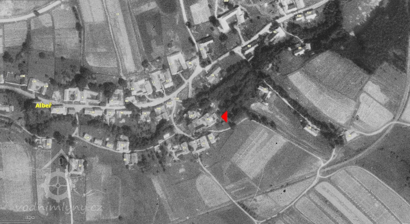 Druhý mlýn po vodě na potoku Dračice a jediný, který ještě nyní stojí v Albeři stojí, je mlýn čp. 29, který jsem pojmenoval jako "prostřední". Čitelnými matrikami je mlýn doložen v r. 1772, ale je jistě starší. Při mlýně byla i pila. Po roce 1930 dostal mlýn turbínu. Mlýn mlel během 2. světové války i po ní. Stavení si zachovalo podobu mlýna a dnes je možno se v něm ubytovat.