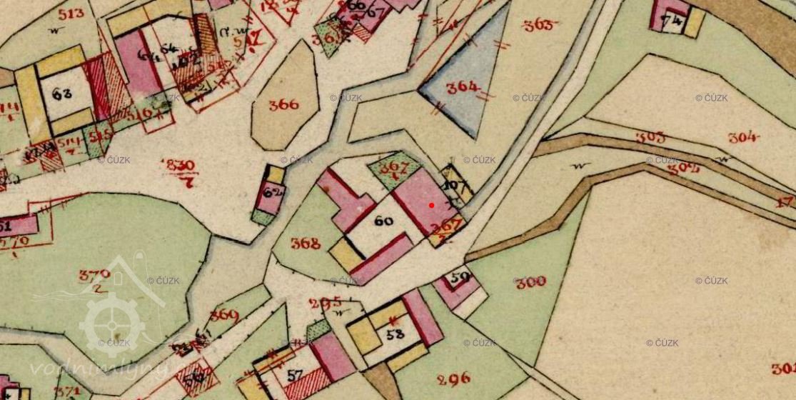 1930: 2 kola na svrchní vodu, hltnost 0,093 m3/s, spád 3,18 m, výkon 6 HP