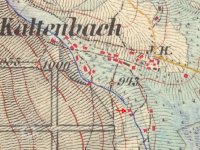Mlýn stál o samotě v části obce Kaltenbach na levém břehu Studeného potoka. V roce 1951 (viz letecké mapování) objekt nestál. Na snímku je vidět jen zplanýrované území.
