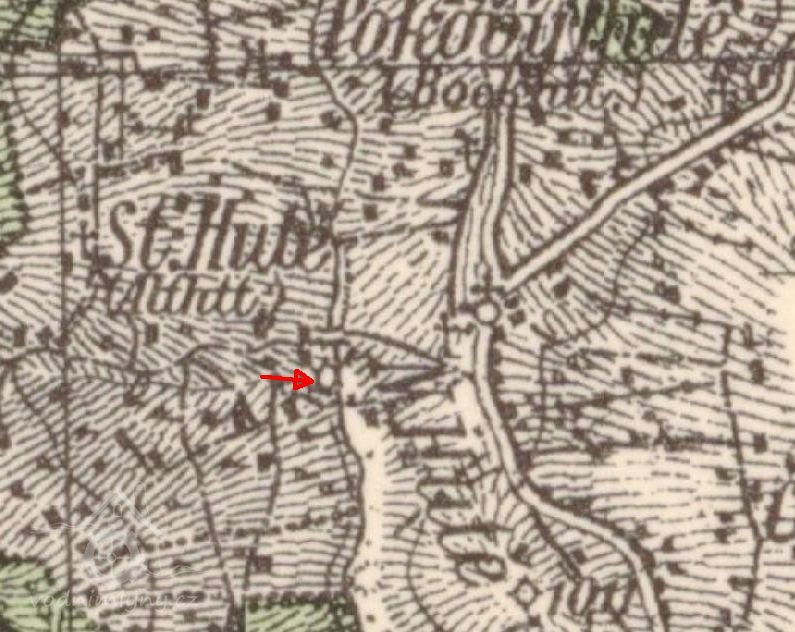Objekt mlýna je zobrazen na mapě Stabilního katastru:Čechy-5273-1 Nové Hutě/Kaltenbach, na mapovém listu č.008.