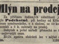 Upozorňují předpokládané nové majitele, že vodní sílu, která jest právem mlýna, chce koupit a zrušit Vodní družstvo v Nymburce a kupující béřou navědomí, že vodní síla od mlýna odpadne a mlýn bude poháněn silou motorickou. Nový majitel ve mlýně zahájil provoz, jak tomu nasvědčují visačky na pytle s moukou s nápisem: Karel Klimeš - autom. mlýn Podchotuc Křinec. Dopis také shrnuje hodnotu nepatrné zálohy vyplacené při uzavírání smlouvy. Karel Klimeš zřejmě nedodržel podmínky kupní smlouvy, a tak za krátkou dobu se vše vrátilo zpět rodině Apltauerů.