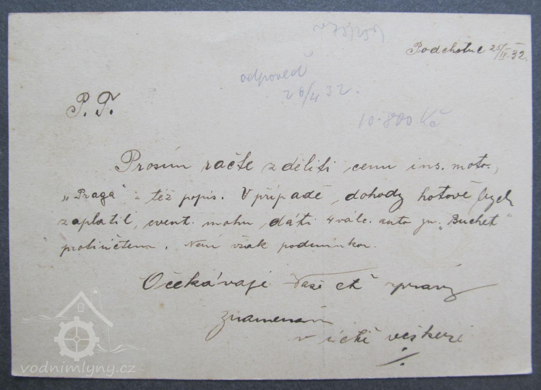 1932 - Ferdinandt Kraft (viz korespondenční lístek)