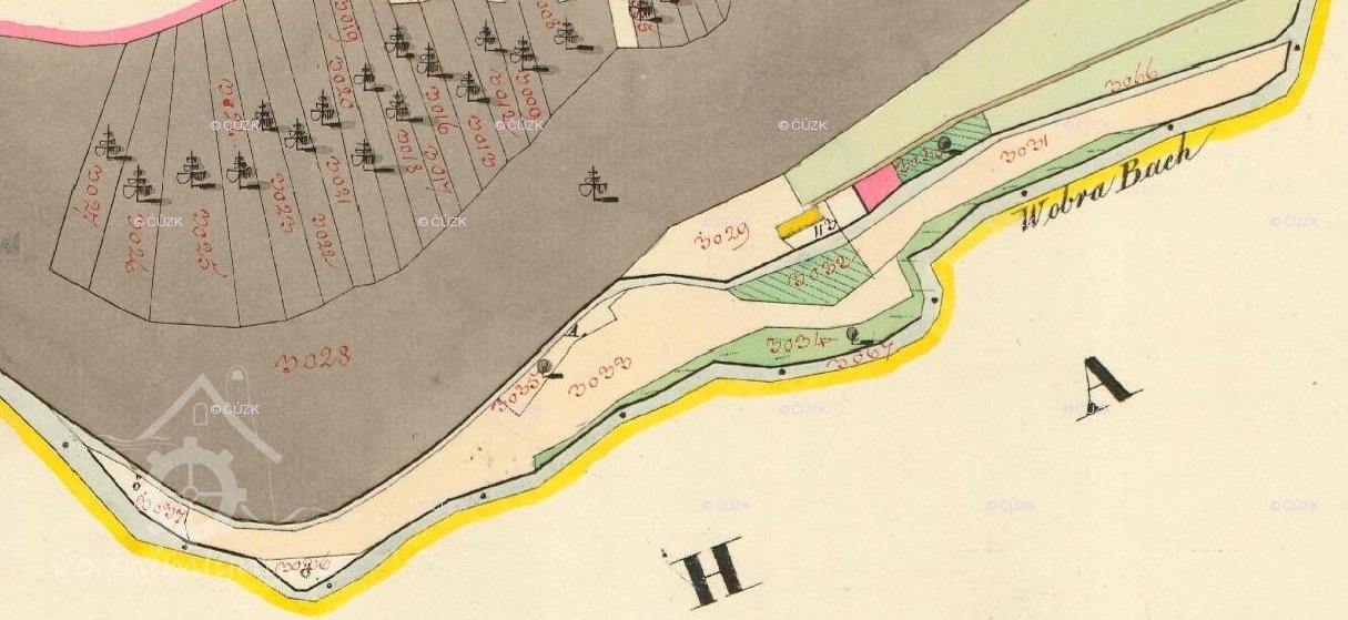 Popisr. 1930-1 kolo na vrchní vodu, hltnost 0,14 m3/s, spád 4,39 m, výkon 5,4 HP.