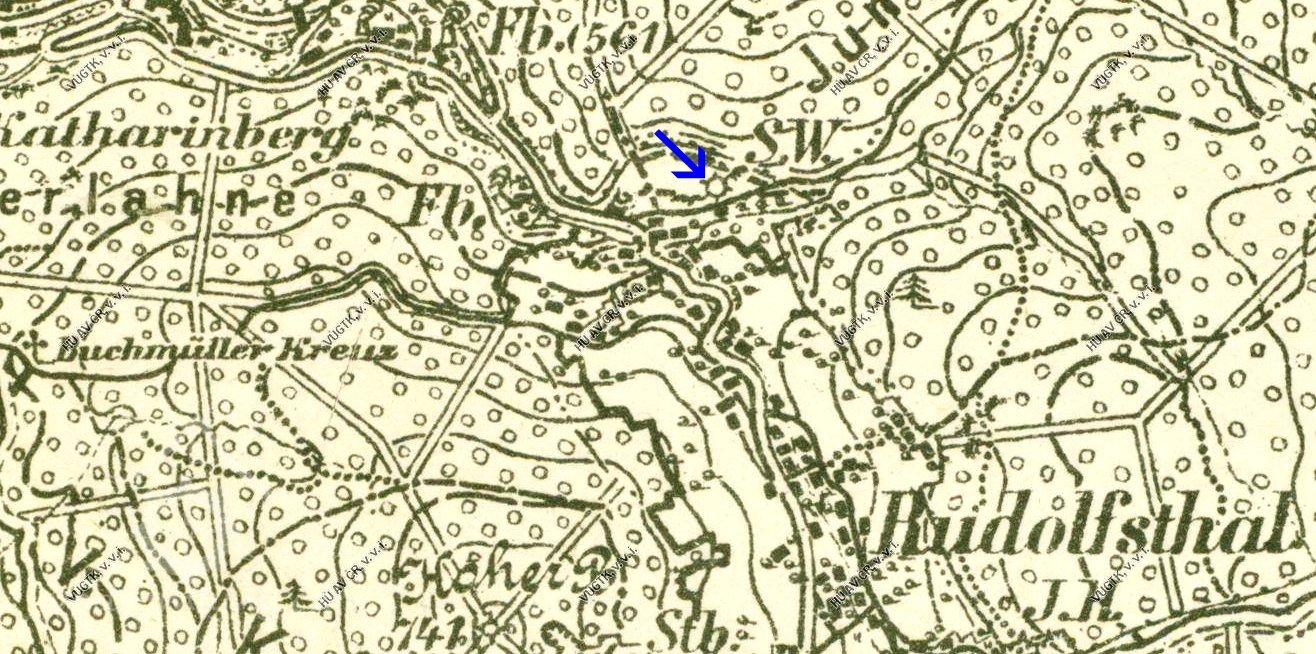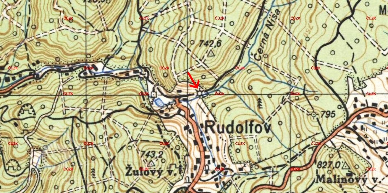· V Jizerských horách u křižovatky cest na Žulovém svahu nad údolím Černé Nisy stojí kříž. Připomíná místo, kde 13. března 1864 zemřel mlynář Anton Jäger z Rudolfovského mlýna (někdy také Buschmühle - podle německého jména obce), připomínaného v údolí Černé Nisy již v 17. století.
