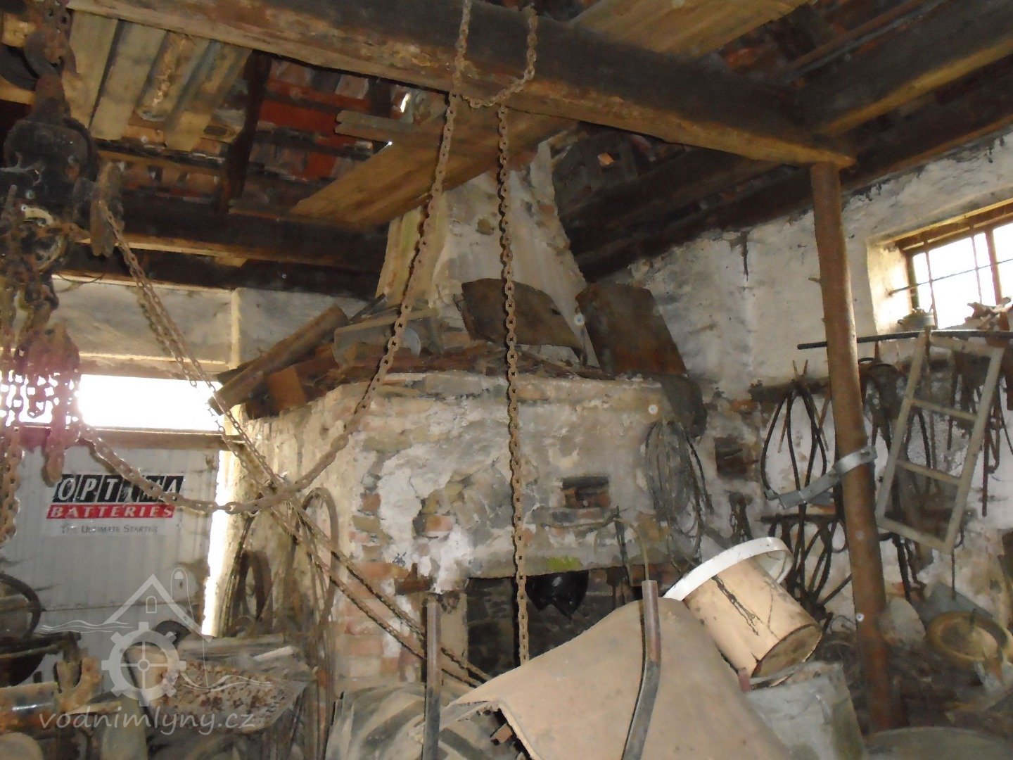 V mlýnici dochováno množství technického vybavení.