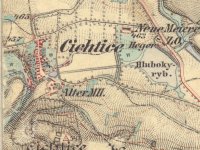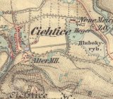 1907: Mlýn čp.37 v Čichticích leží na pravém břehu stoky, která od pravého břehu tzv. Zlatého potoka začíná a sice ve vzdálenosti 850 m a ve vzdálenosti 28 m od mlýna zase do něho ústí.