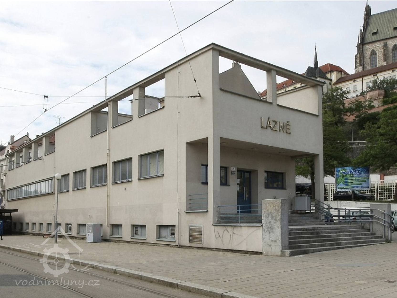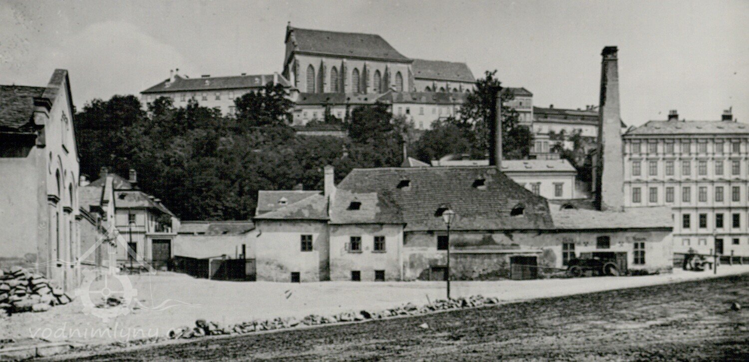 Přímo pod Petrovem stál od nepaměti mlýn, původně zvaný panský, později Lamplův. Počátkem 14. století mlýn vlastnil bohatý mlynář Václav Ház. Ten se zasloužil o vybudování městského vodovodu, který přiváděl vodu ze Svratky kamenným potrubím a pomocí čerpadel až do vodojemu na Petrově. Mlýn byl zbořen koncem 19. století, samostatná budova s čerpadly (od roku 1853 poháněnými parním strojem) stojící na protějším břehu Svrateckého náhonu byla roku 1883 přebudována na městské sprchové lázně a později v letech 1927-1928 podle návrhu Bohuslava Fuchse na lázně vanové.