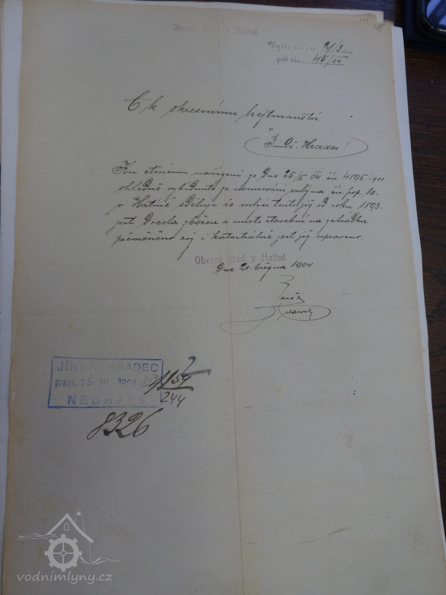 V r.1904 sděluje starosta obce c.k. okresnímu hejtmanství, že mlýn zanikl v r.1873.