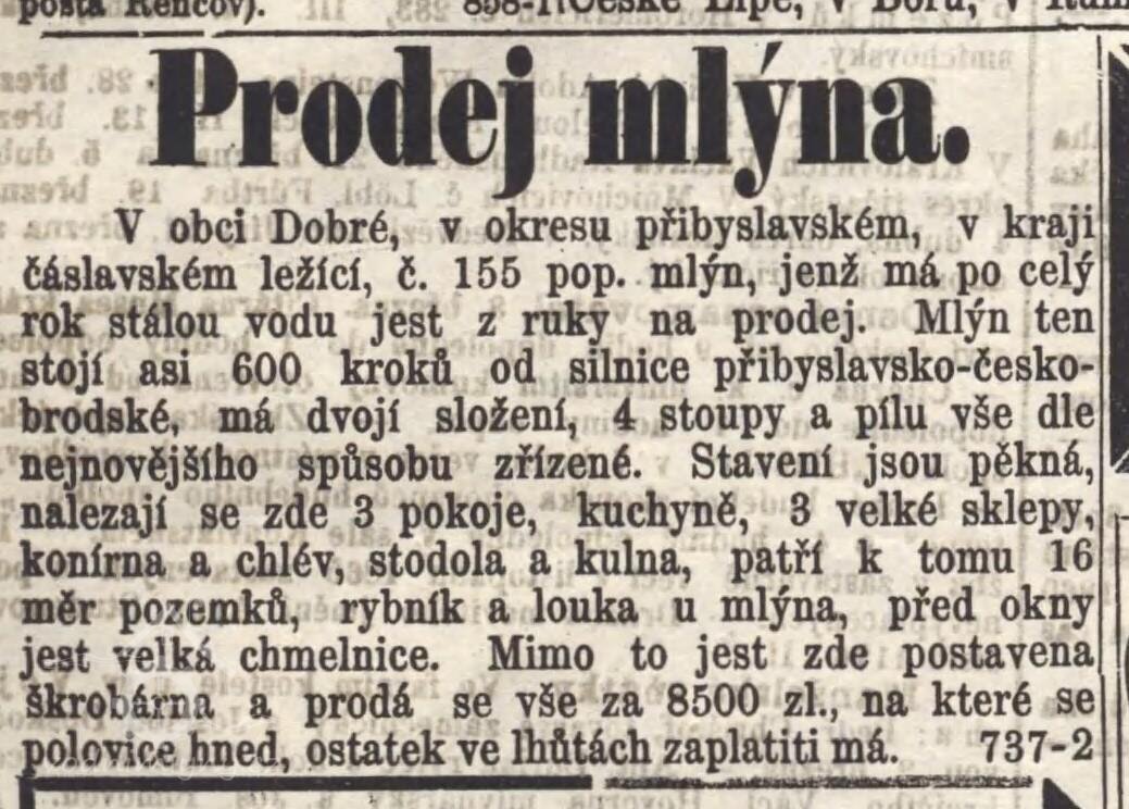 1930 vlastnila vodní provoz, který byl evidován jako mlýn a pila na Plačském potoce v Přibyslavi-Dobré, Augustina Vomelová.