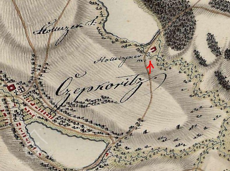Východně od Šebkovic asi 200 m pod hrází rybníka Holeček