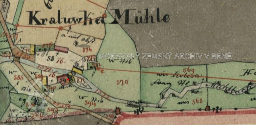 Mlýn zakreslen na I. i II. vojenském mapování a na císařském otisku z roku 1835.