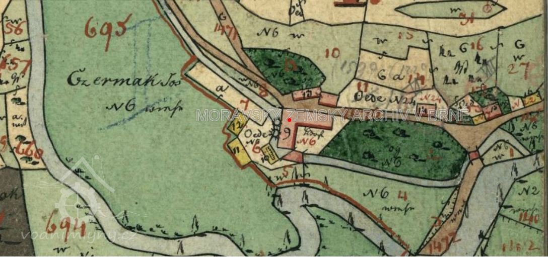 1695 Martin Čermák, platí vrchnosti 2 zl. 13 kr. svatojiřského ouroku, 2 zl. 13 kr. svatováclavského a 15 kr. za ponůcku, 2 zl. 50 kr. z vody, 4 slepice, 60 vajec, 2 měřice žitné mouky, 10 zl. náhrady za robotu (celkem tedy platí 17 zl. 18 kr.)
