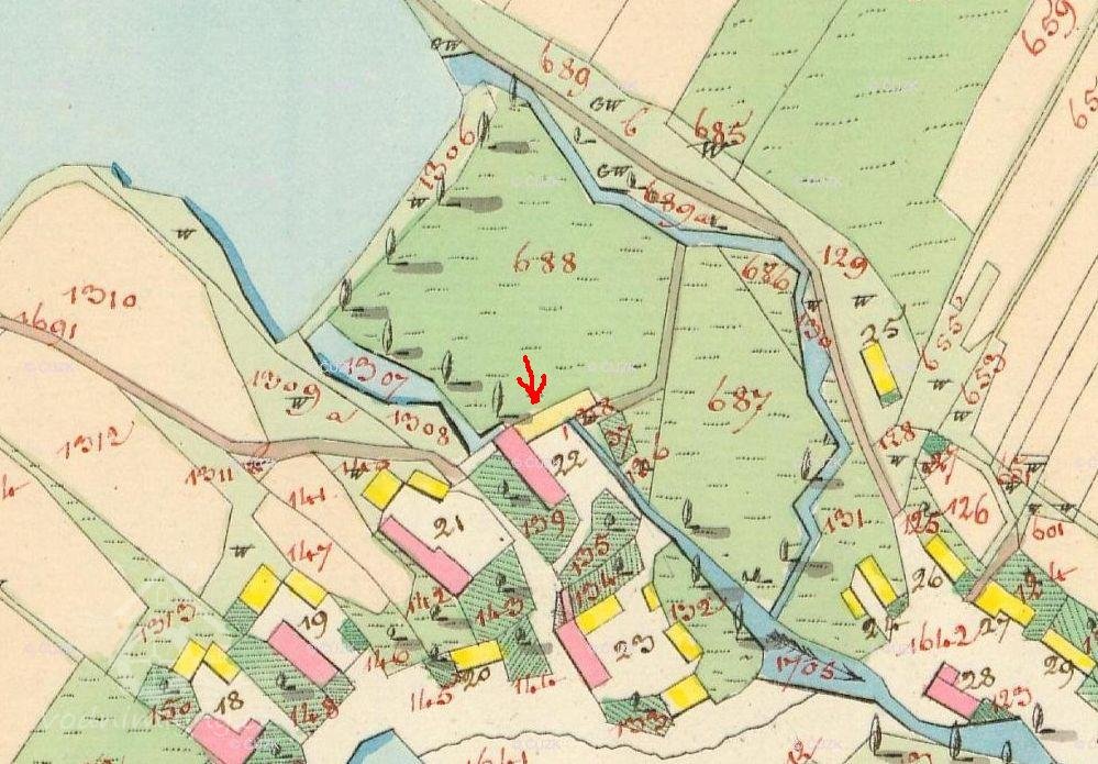 Popis1930: 1 kolo na svrchní vodu, hltnost 0,112 m3/s, spád 4,2 m, výkon 4 HP
