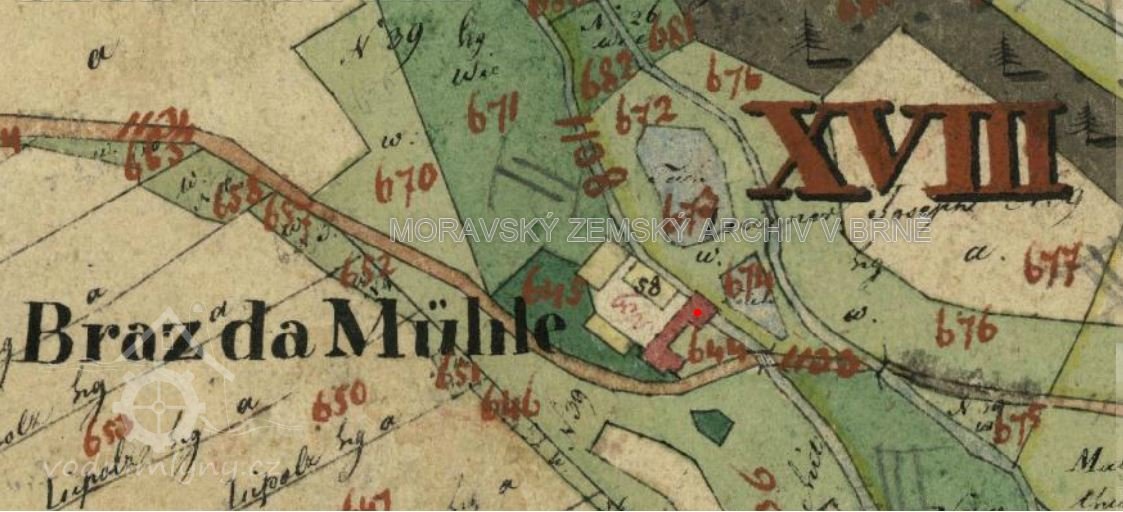 Zaznamenán na II. vojenském mapování a na císařském povinném otisku z r. 1835.