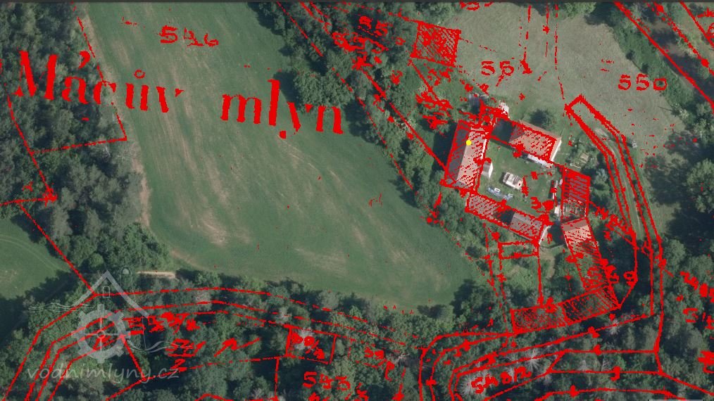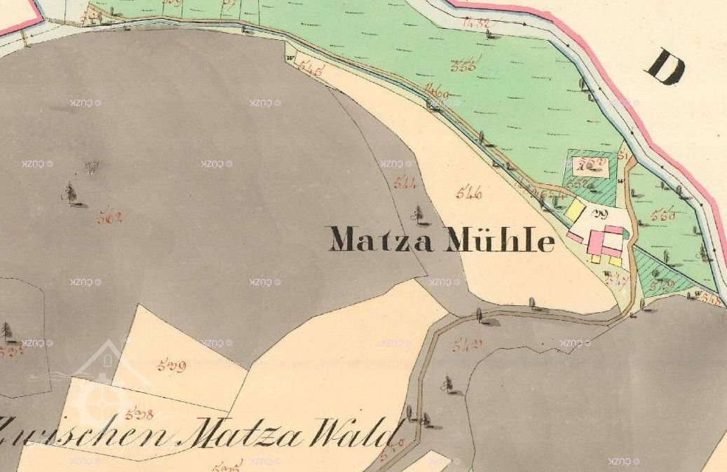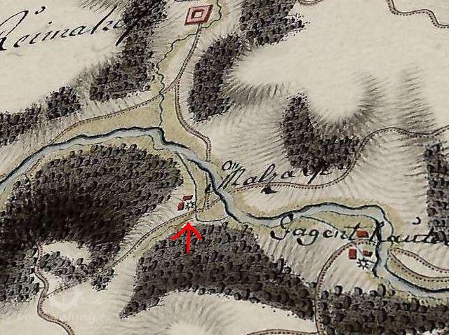 Značka Mácova mlýna je i na III. vojenském mapování.