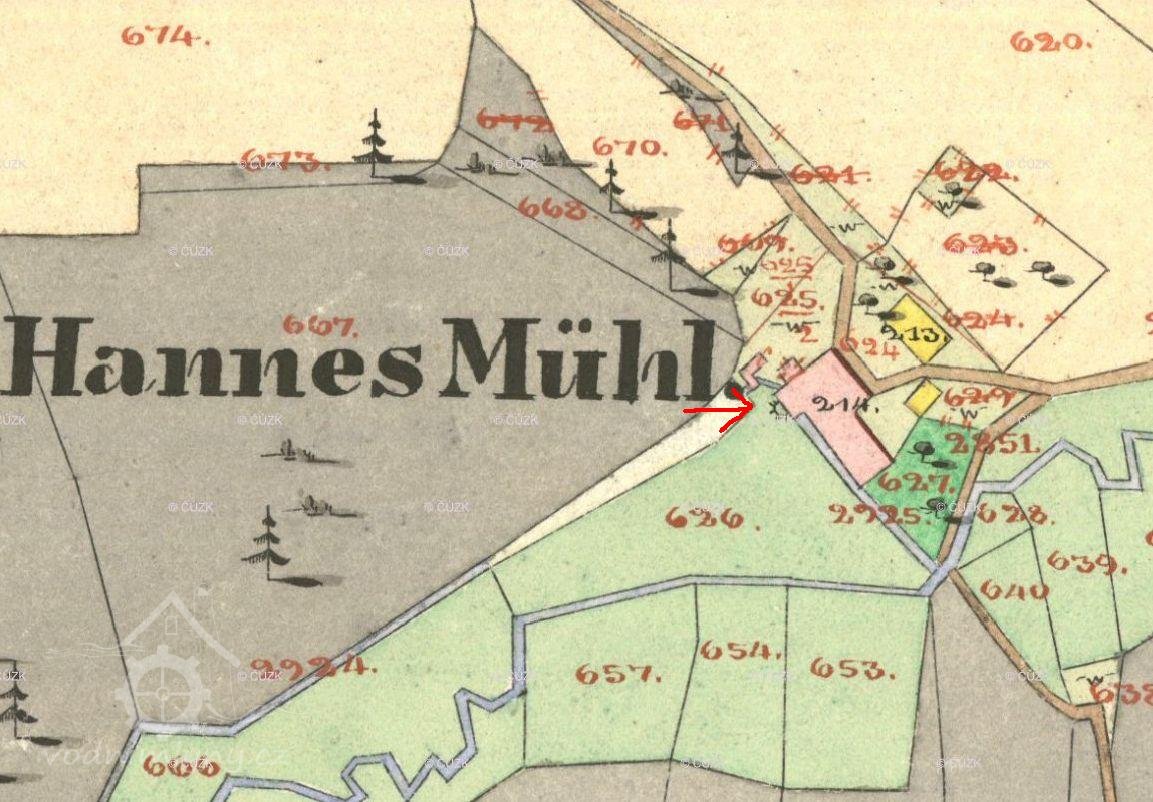 Mlýn s určitostí stál již roku 1756; toto datum bylo uvedeno na kamenném podstavci se sochou Krista u cesty, vedoucí k Hanesovu mlýnu, jako upomínka na neštěstí, které se stalo obyvatelům přilehlého mlýna. Socha byla v r. 1993 odcizena.