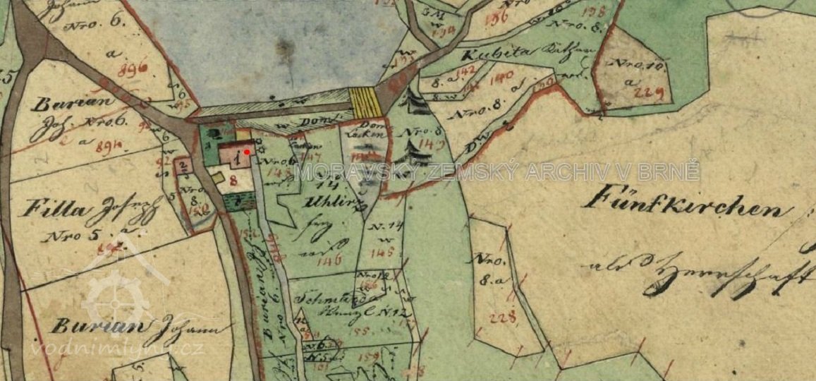 Popis1930: 1 kolo na svrchní vodu, hltnost 0,137 m3/, spád 4,5 m, výkon 5,5 HP
