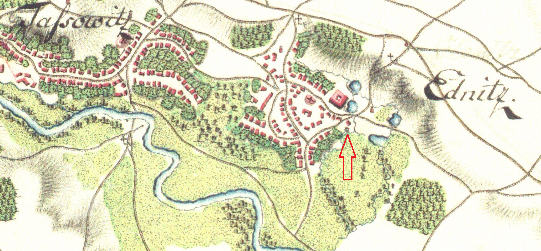 Mlýn stojí na jihovýchodním okraji obce