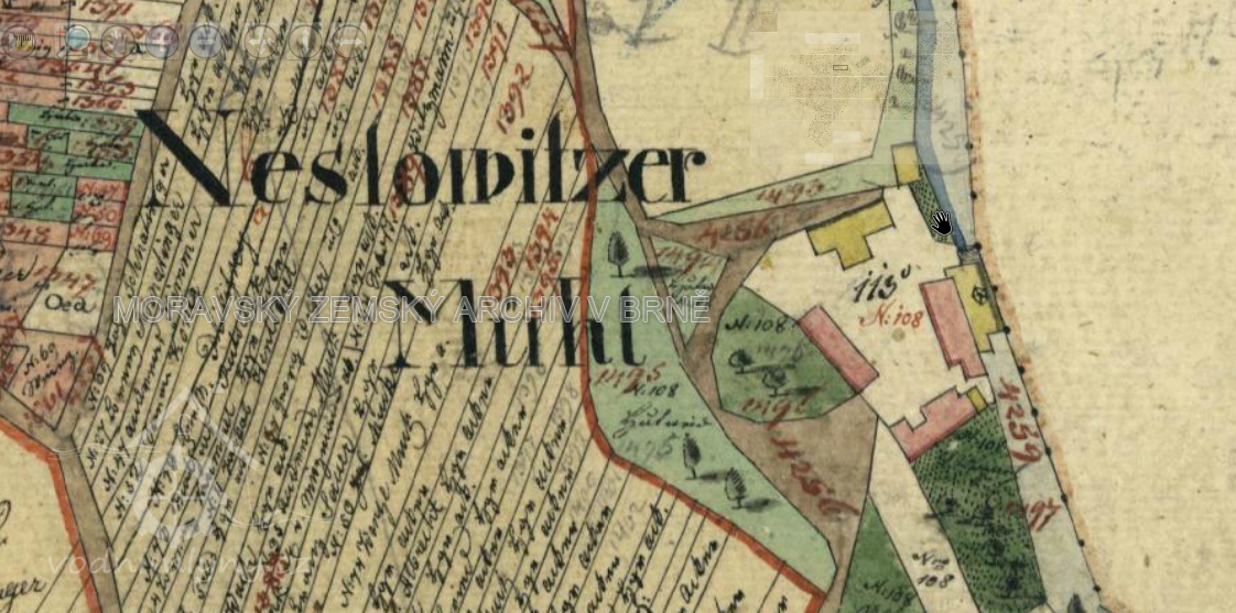 Klasicistní vodní mlýn na místě bývalé obce Neslovice. Mlýn patřil do soustavy středověkých mlýnů na na tzv. Krhovicko-jaroslavickém náhonu.