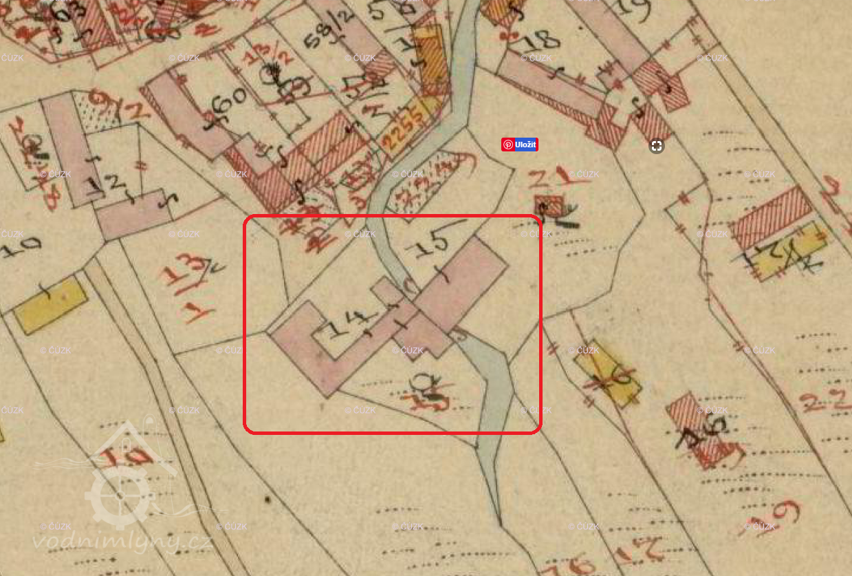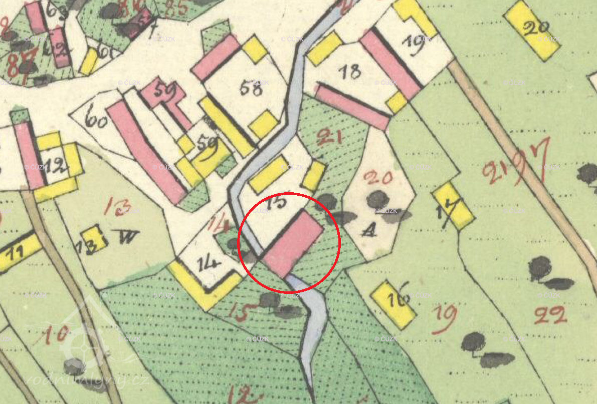 Popis1930: 1 kolo na svrchní vodu, hltnost 0,07 m3/s, spád 5,7 m, výkon 3,6 HP