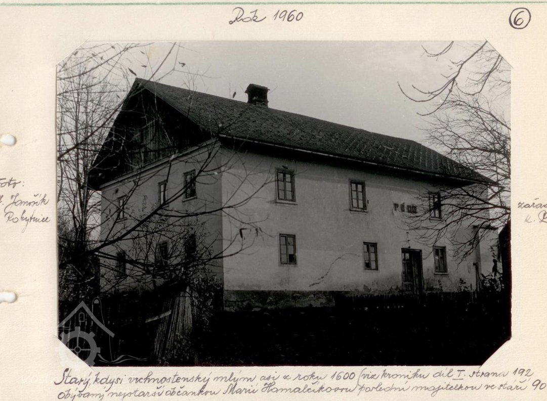 Mlýn je majetkem Františky Hamalčíkové, vdově po mlynáři a zvěroklestiči Petru Hamalčíkovi. Původně byl to mlýn panský (vrchnostenský). Původní majitel mlýna o 1 složení Václav Holubec prodal mlýn roku 1669 vrchnosti. Patřil k němu 1 kus pole o 6 měřicích. V této době je zmínka o vrchnostenském mlýnu o 1 složení, o vrchnostenské ovčárni a dvoře, o vrchnostenském šenkhausu a palírně v Rokytnici dne 18. augus 1667 Zdeněk ze Zástřizl. Později přešel mlýn do majetku N. Dubiáka ze Slovenska. Asi v roce 1850 prodal jej Josefu Hamalčíkovi z Lipové, po něm jej zdědil syn Petr.