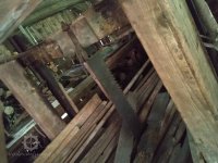Vedle mlýna dosud stojí pilnice s katrem a pilou jednuškou