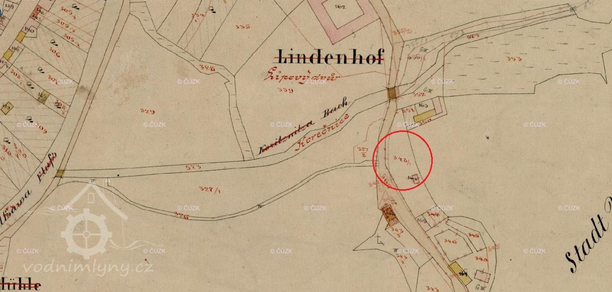 Opravený mlýn stojí na křižovatce ulic Nivnická a U Korečnice. Na pozemku před mlýnem leží větší množství mlecích kamenů.